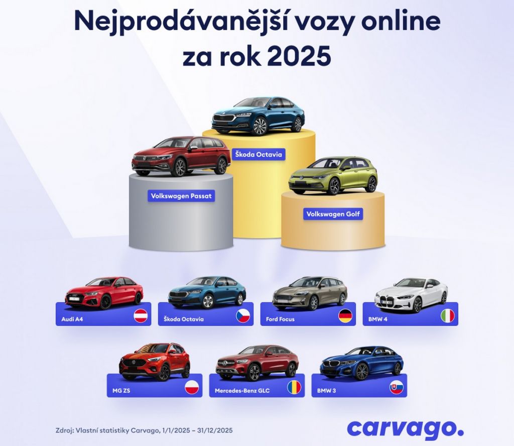 Carvago odhaluje nejprodávanější ojeté vozy za rok 2025